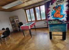 Ihr könnt euch auf zwei Töggelikästen, einen Beamer für Filme sowie eine Spielkonsole freuen. Hier ist für alle etwas dabei – ob ihr spielen, chillen oder einfach nur Zeit mit Freunden und Freundinnen verbringen möchtet.